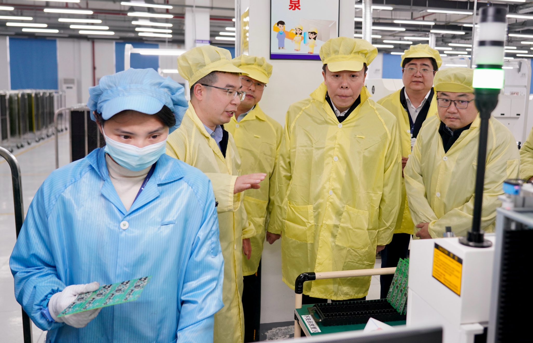 王書記等一行領導在胥總的陪同下參觀了公司的SMT車間、IDC車間,了解了富陽中恒產業園的基本情況、生產經營情況。