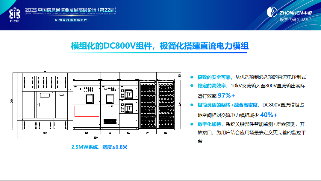 在2025中國信息通信業發展高層論壇上,杭州中恒電氣股份有限公司IDC事業部總經理李善策先生發表了題為“AIDC直流800V產品定義與探討”的精彩演講,為與會者呈現了數據中心電源系統在人工智能時代的新發展與新機遇。